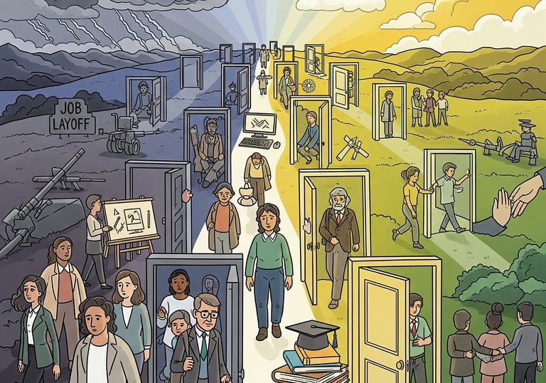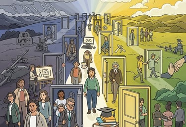 We are dedicated to providing a safe space for those navigating the challenges of layoffs and war, offering resources, connections, and encouragement to move forward together.